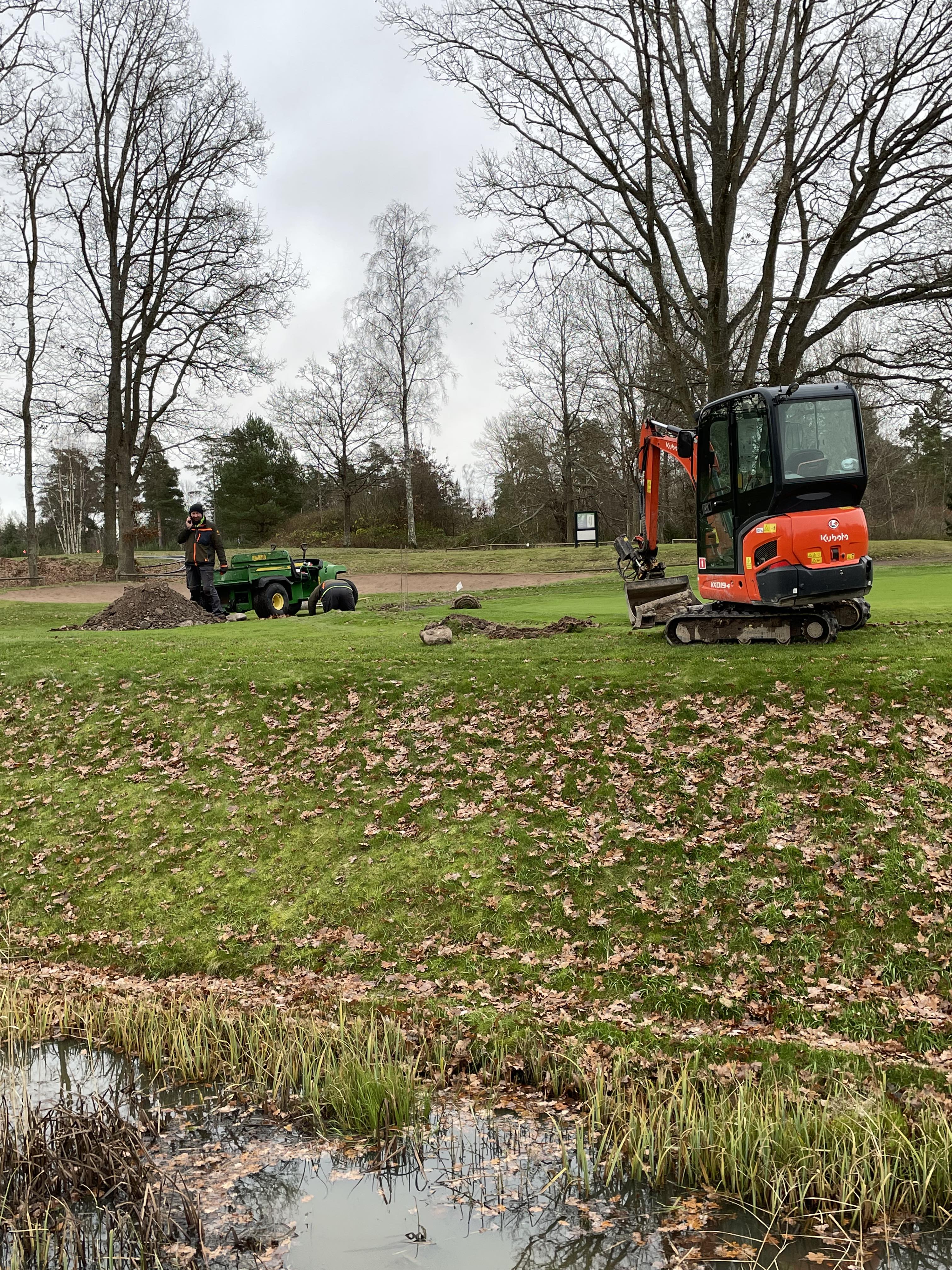 Både greener, tees och foregreens har hålpipats, vertikalskurits (djupt!!), stödsåtts i flera riktningar och dressats. Tanken bakom detta är att utöka beståndet av ädelgräs på dessa ytor. Dessa gräsarter står bättre emot svampangrepp, slitage och det gör de med mindre närings -och vattenbehov än vitgröen som idag är den dominerande arten. Fullständig konvertering av gräsart är nästintill omöjligt i vårt klimat eftersom det passar vitgröen otroligt bra, men kan vi öka beståndet av ädelgräs till 50-60% över tid så kommer banan att vara mycket bättre rustad för framtida hållbarhetskrav från myndigheter.