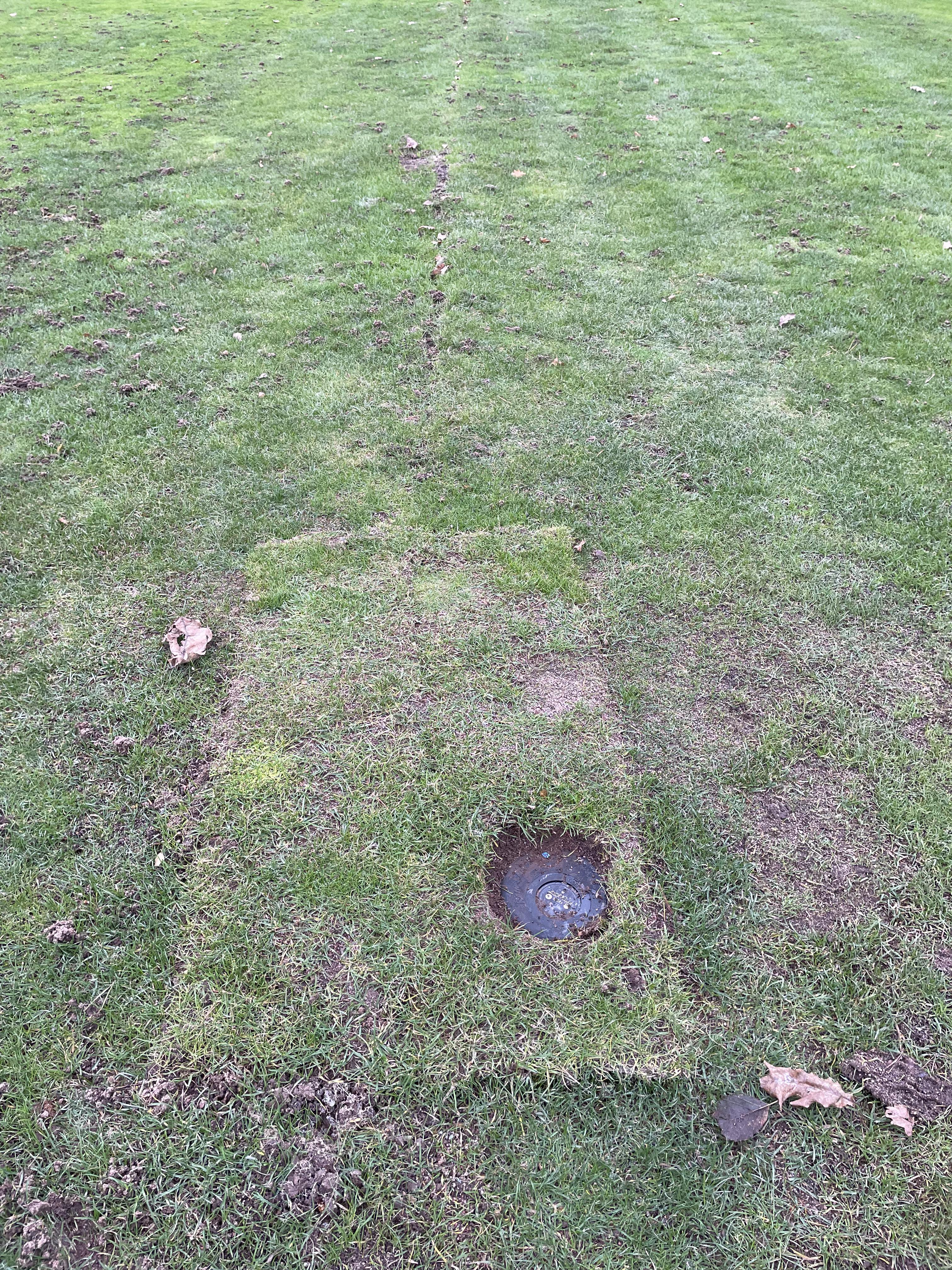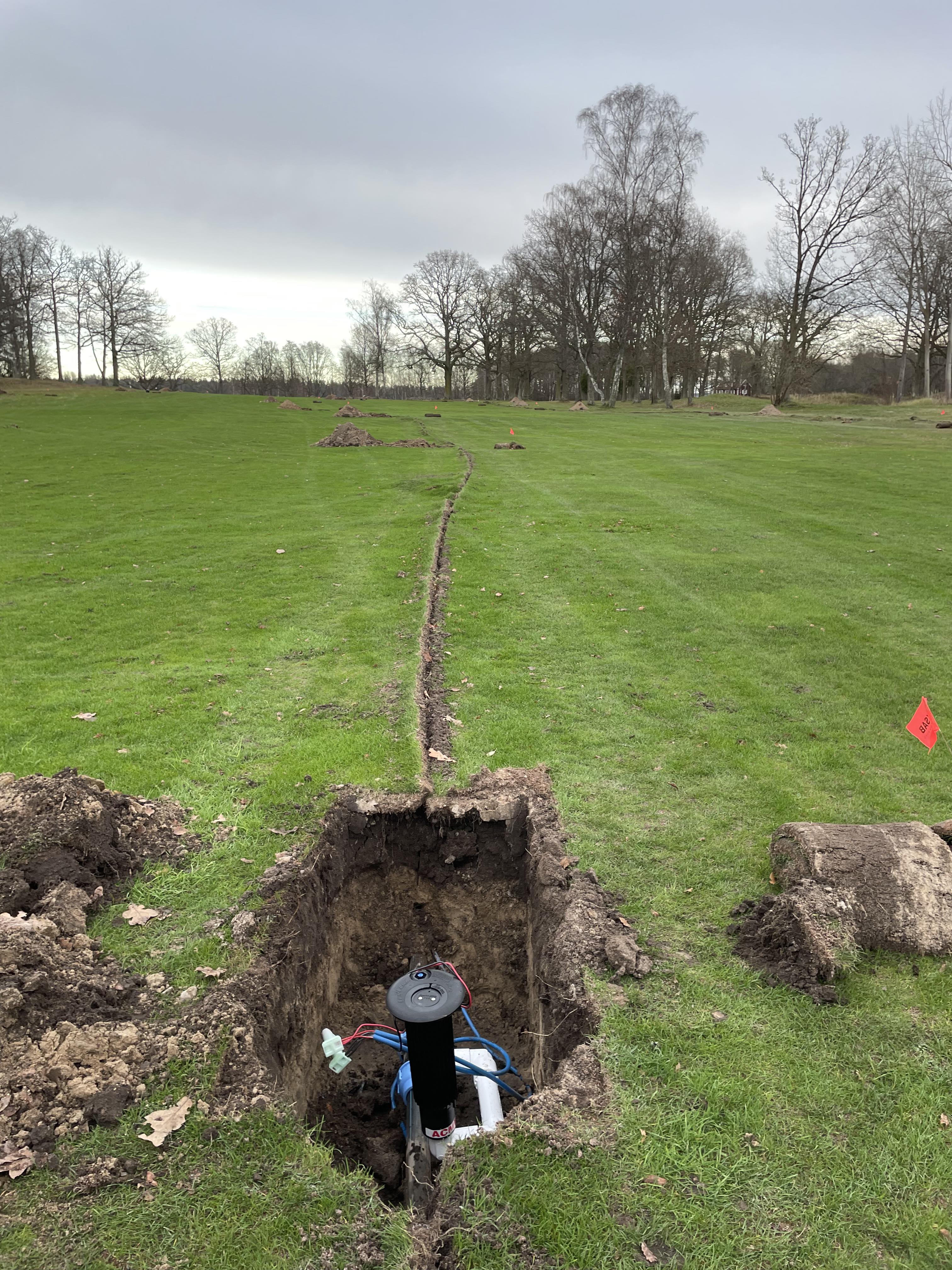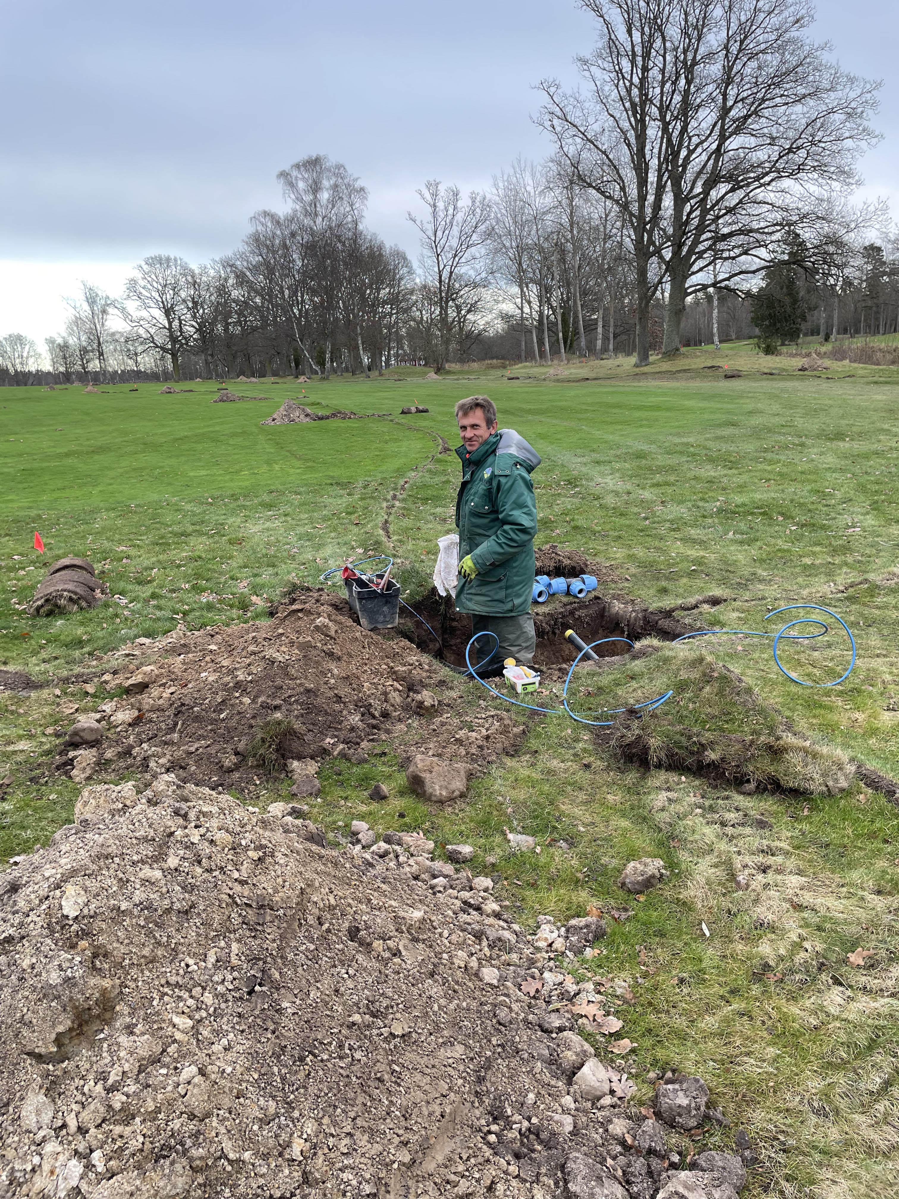 Arbetet med bevattningssystemet fortlöper enligt plan. Hål 5-8 är klara sen 11-16 är också klara. Kan nämnas att planen är att jobba sig bort från dom blöta hålen innan det blir för blött. Just nu jobbas det på hål 10. Bild 3-4 visar före och efter installation.